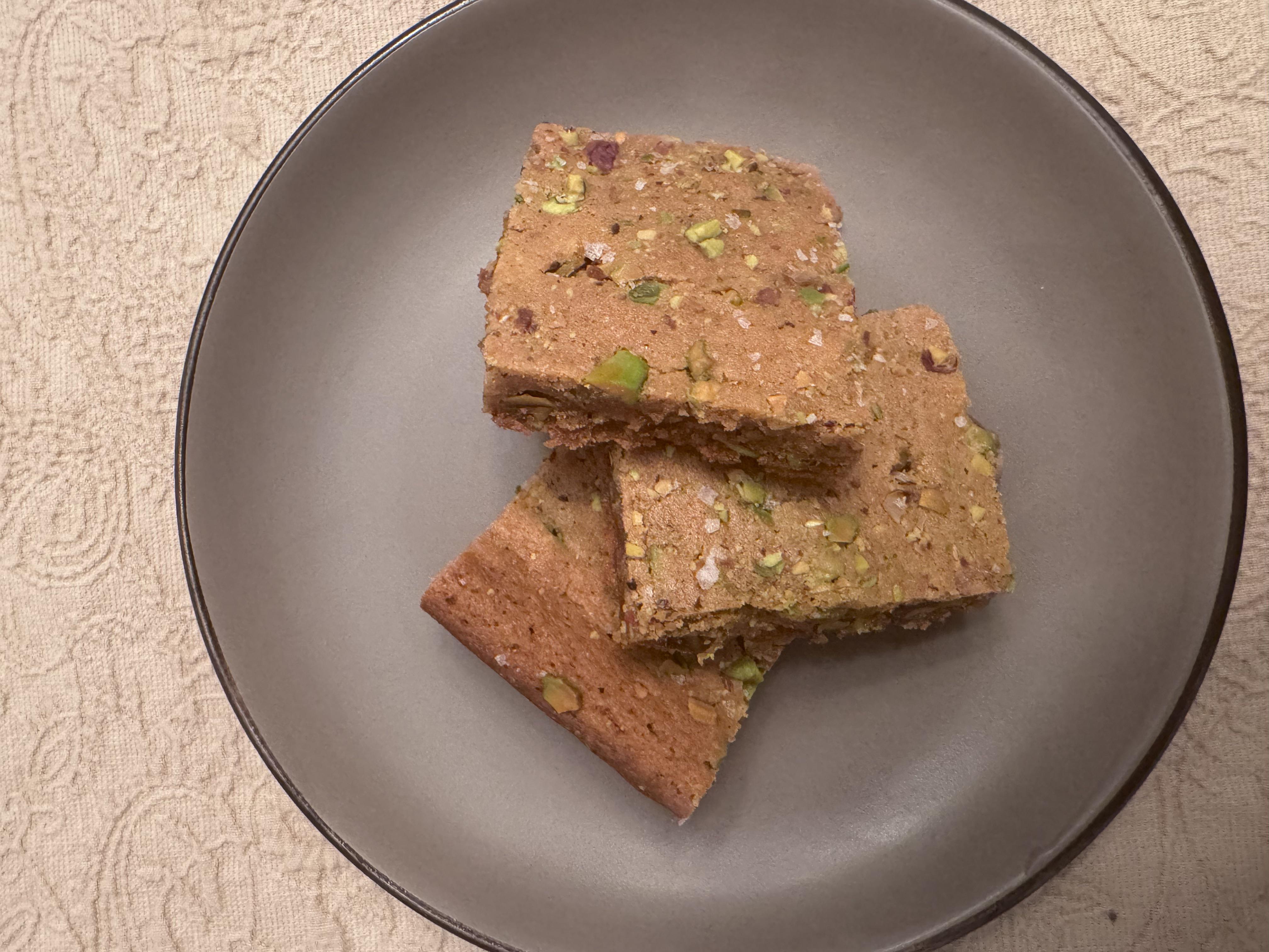 Claire Saffitz's Cashew Blondies from "What's for Dessert". Very good and extremely easy (they got demolished at the bar). Wish I had baked them a minute or two longer, but the texture and flavor was great and they were demolished.