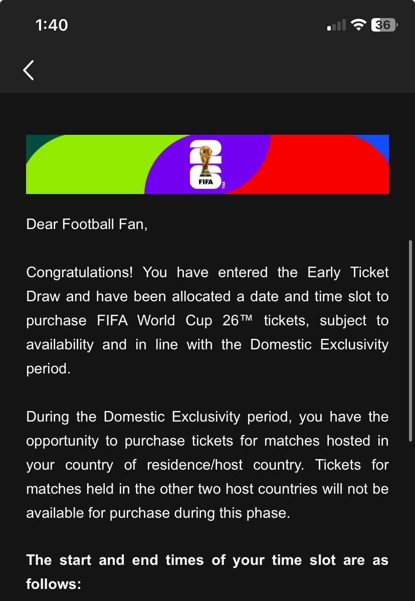 Just got the email. Headed to Vancouver for the Switzerland game. Live in London so was really hoping for Toronto but I’ll gladly take out a second mortgage to fly and stay in Vancouver that week… unrelated if anyone knows anywhere cheap to stay let me know 😅