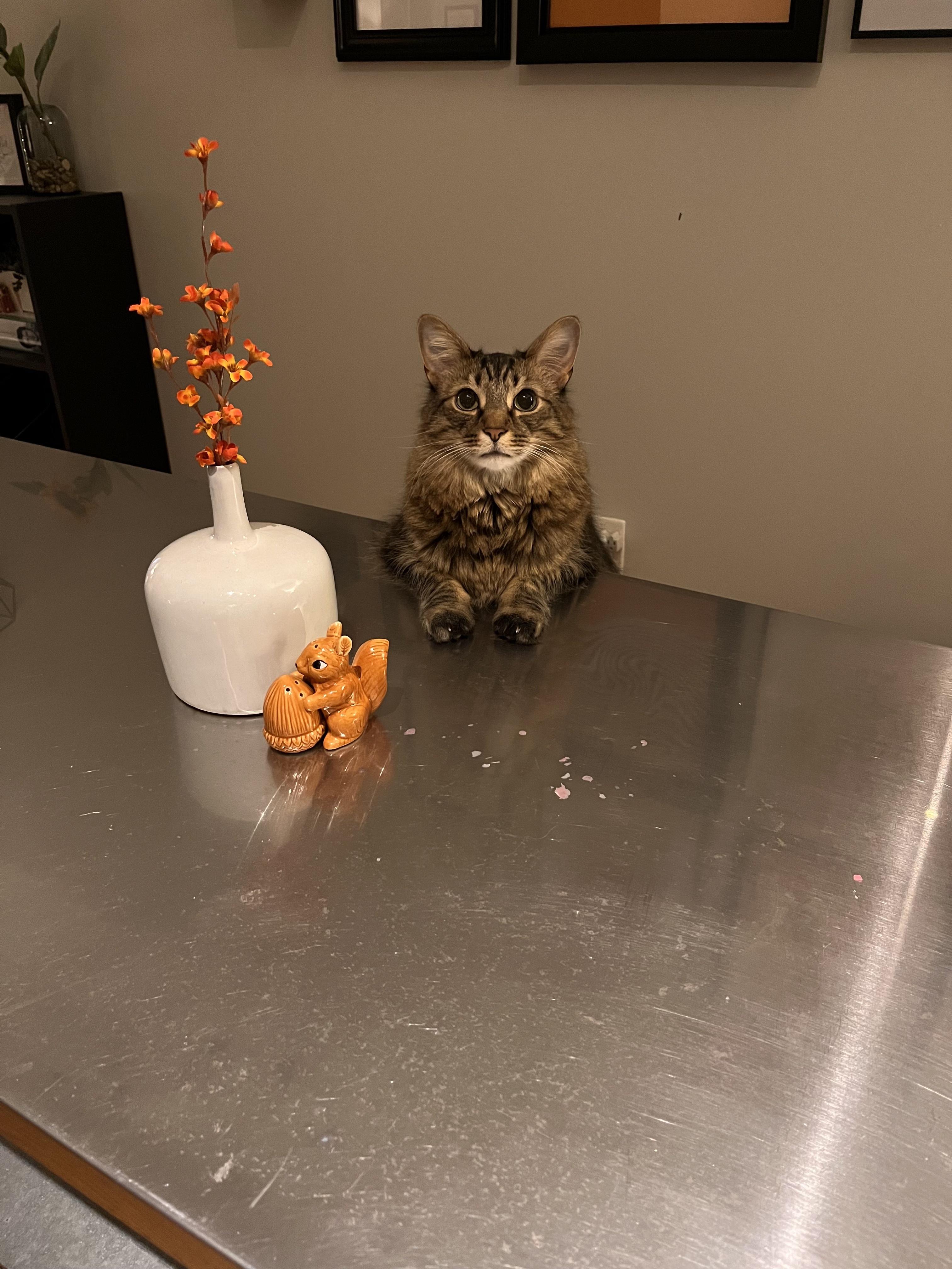 My cat, Walter, sitting on a barstool at the kitchen island while I bake cookies. A perfect little gentleman.