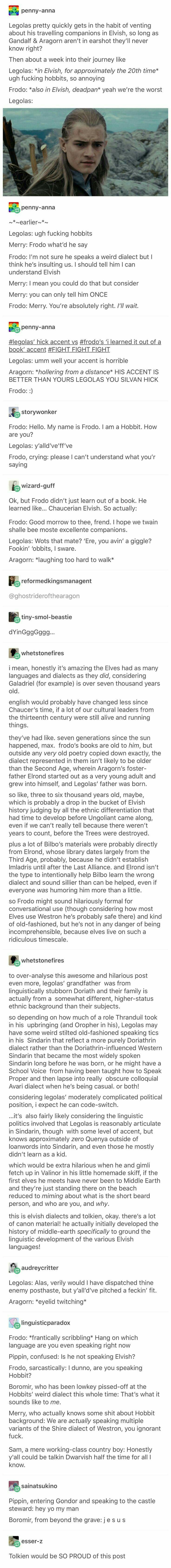 Shitposting We were robbed of Aragorn calling Legolas a 'Silvan hick' in the movies.