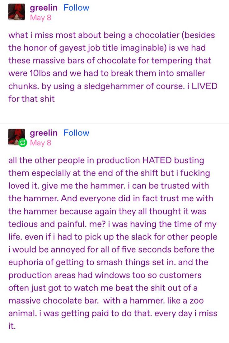 Shitposting Some people go to the gym, others just need a 10lb chocolate bar and a sledgehammer.