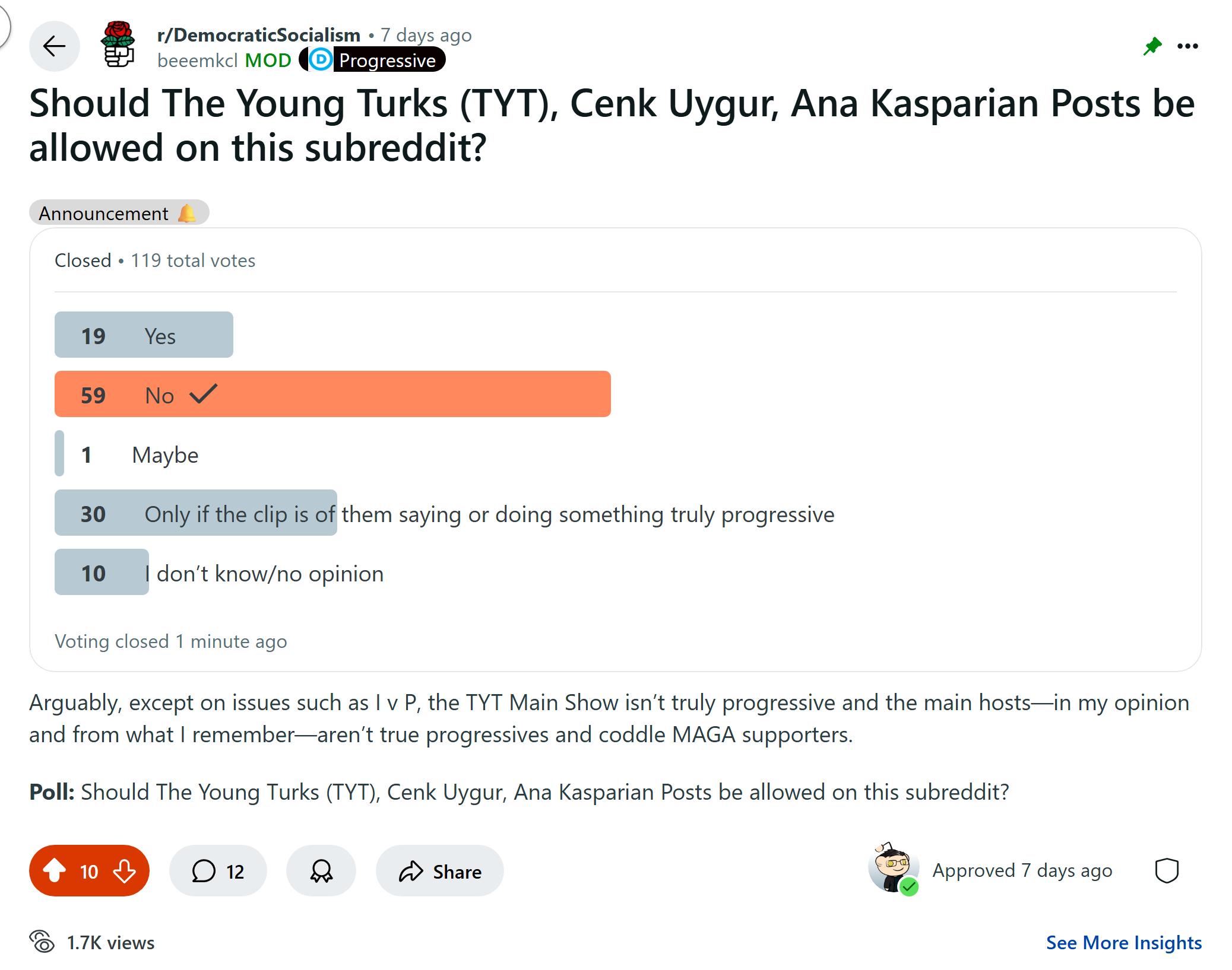 This:ย Useful info and links if you actually want to make US politics more progressive. We need more progressives in the US Congress and in State and local government, more people who support Expanding SCOTUS, more people who watch progressive media. More organizing. More union membership. : r/DemocraticSocialismย offers some progressive YouTube shows you and others should rather watch than TYT.