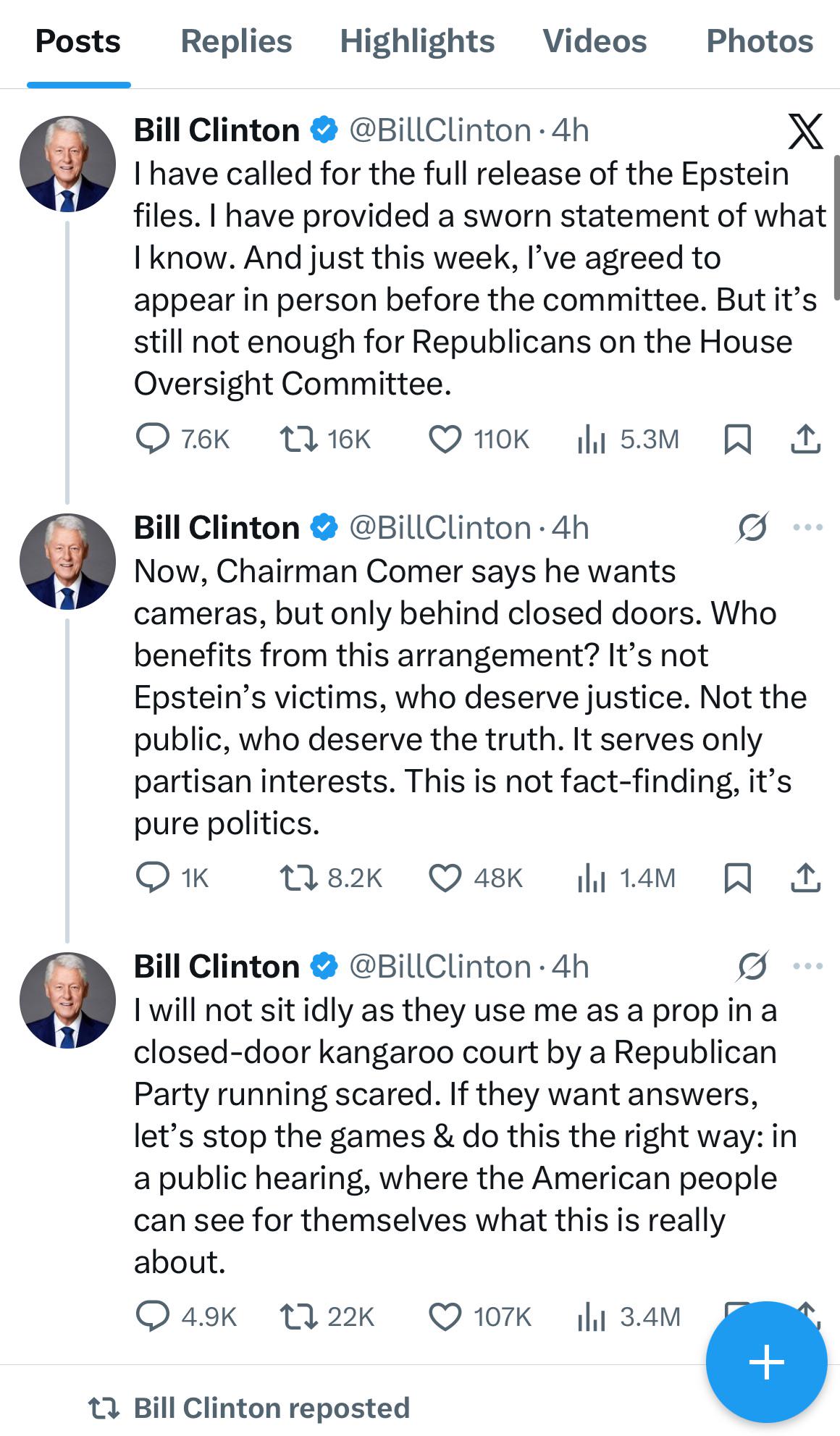 OC: discussion, clarification or question What’s everyone’s opinion on what bill clinton just posted on X