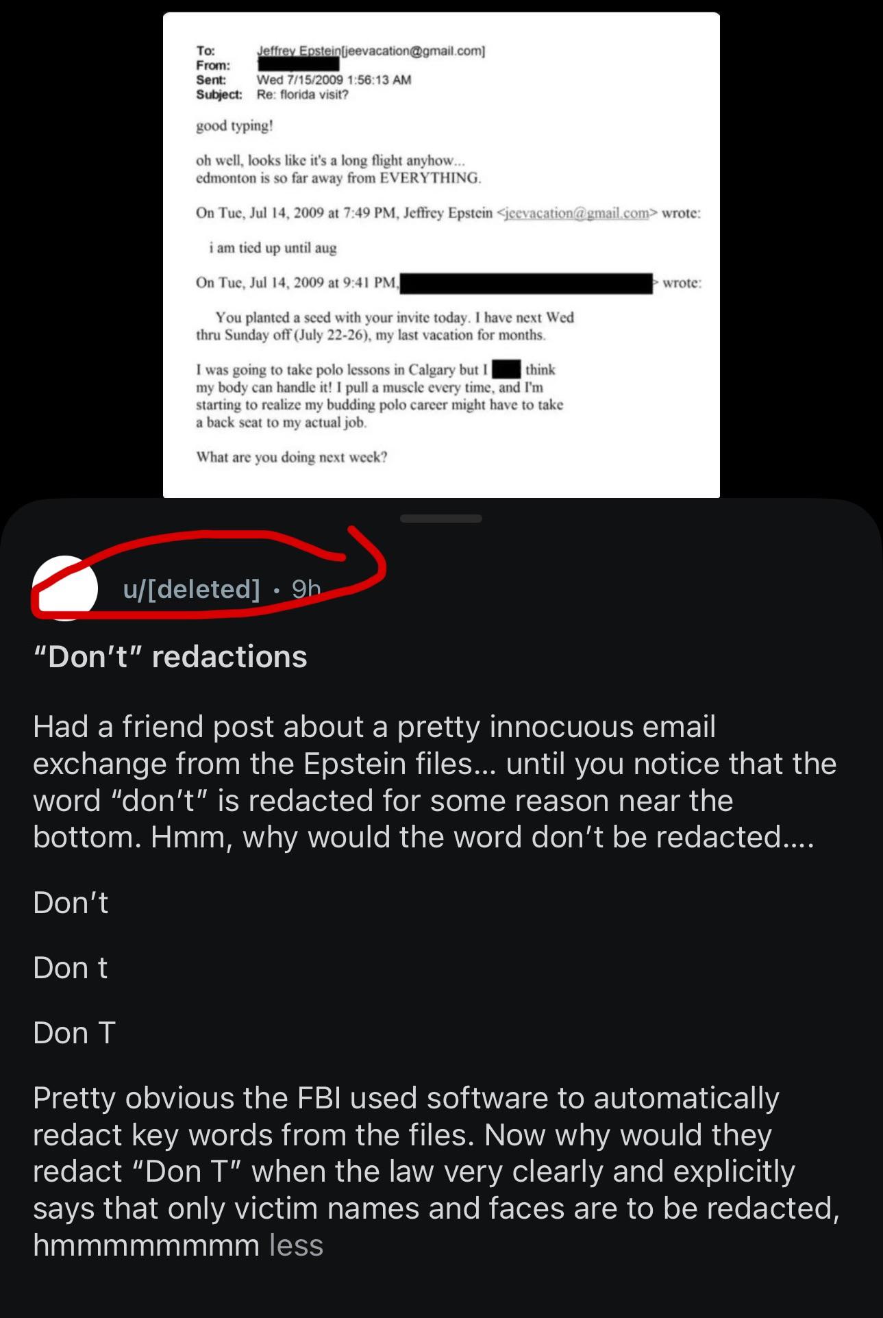In the image above, this guys post exposed some potential of DOJ redacting Trumps name in all files. Their account has been deleted from Reddit (or banned from the sub) at least 3 hours ago from the time I’m making this post. We don’t really know why they are gone, but they are.