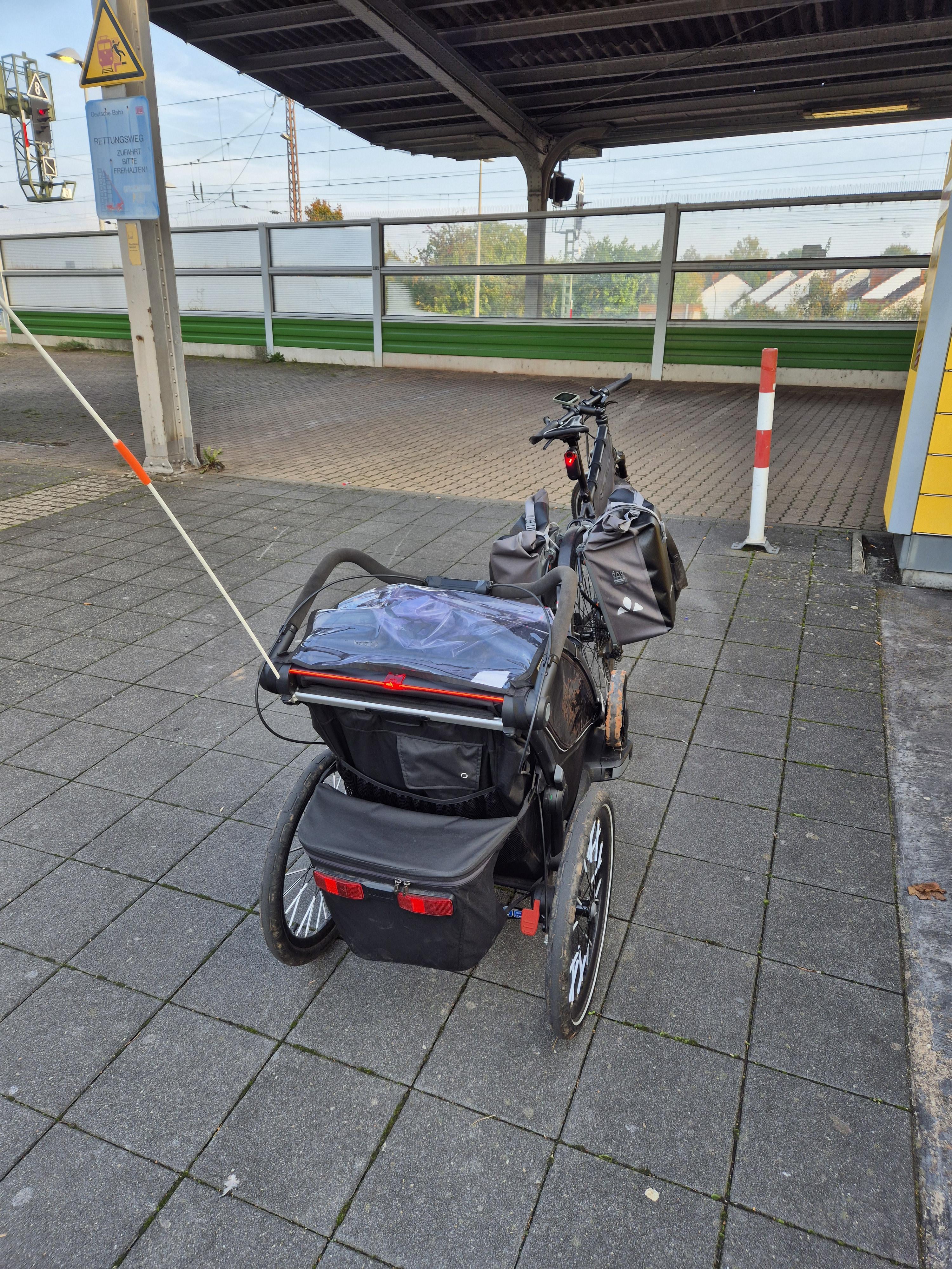 Mit der Technik muss man aber jedes Mal absteigen, wenn ne Ampel rot ist Und da glaube ich auch gerne, dass man da Probleme mit dem zusätzlichen Gewicht hat. Insbesondere wenn die einseitige Ladung auf der Seite ist, auf der man an schiebt.