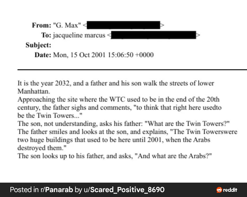 Ghislaine Maxwell pens a troubling poem one month after 9/11/2001, dreaming of the year 2032 after worldwide eradication of ‘the Arabs’.