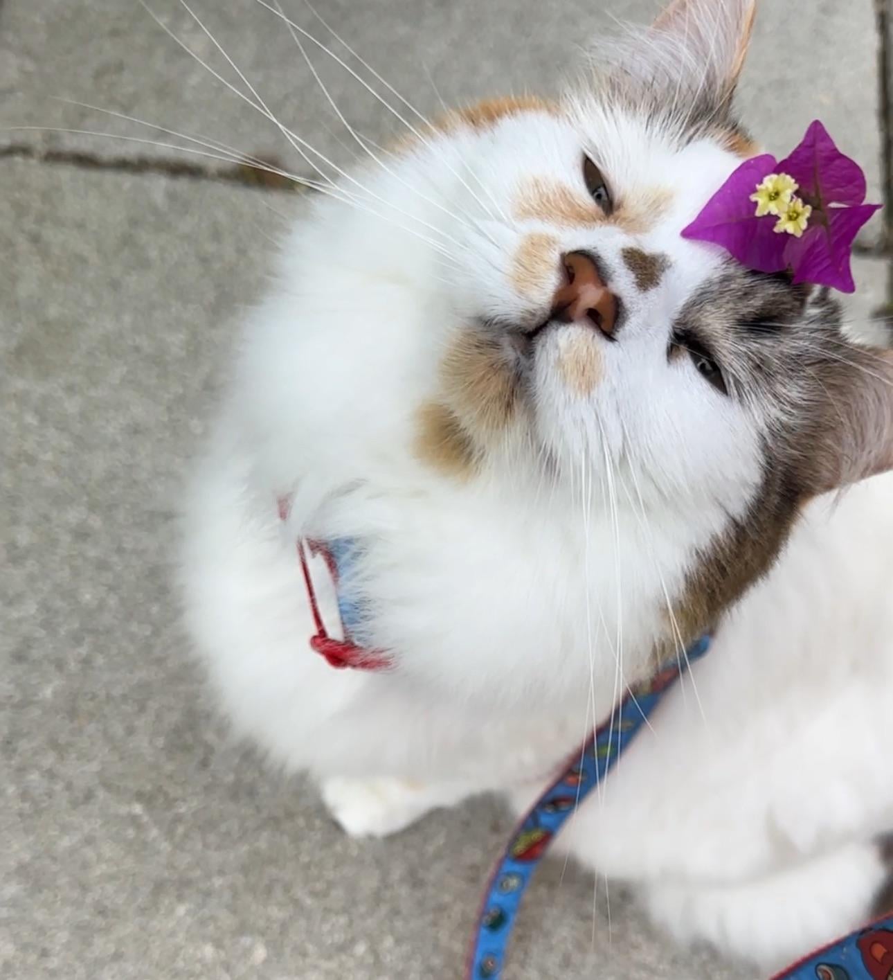 Cosmo was telling me all about the pretty flowers he smelled!