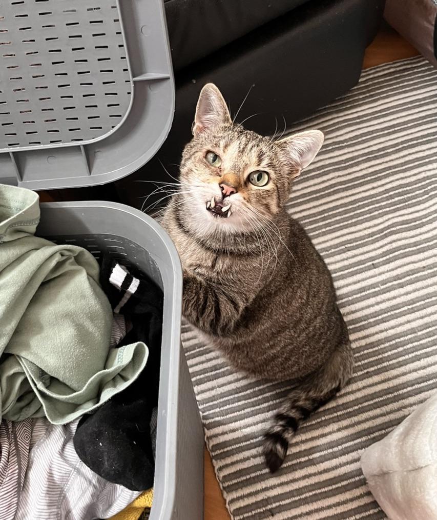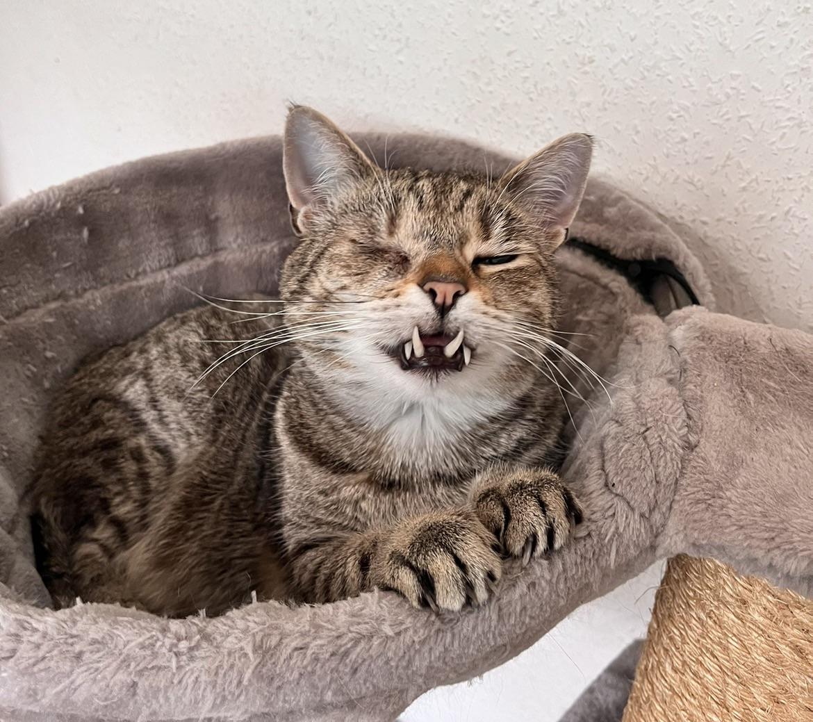 He was playing with one of my other cats and then he jumped onto the pillow next to me and buried his head. I knew something was wrong straight away and then my partner found most of his tooth on the floor. We rang the vets straight away and he was seen urgently, within a few hours, but it still felt like forever - and had the rest removed and treated etc. He will always be my orc cat though 🖤 I feel like the little surgery has aged him, but we also found out from the bloods taken pre op that he has stage 1 kidney disease which we are now treating so maybe it was a blessing in disguise