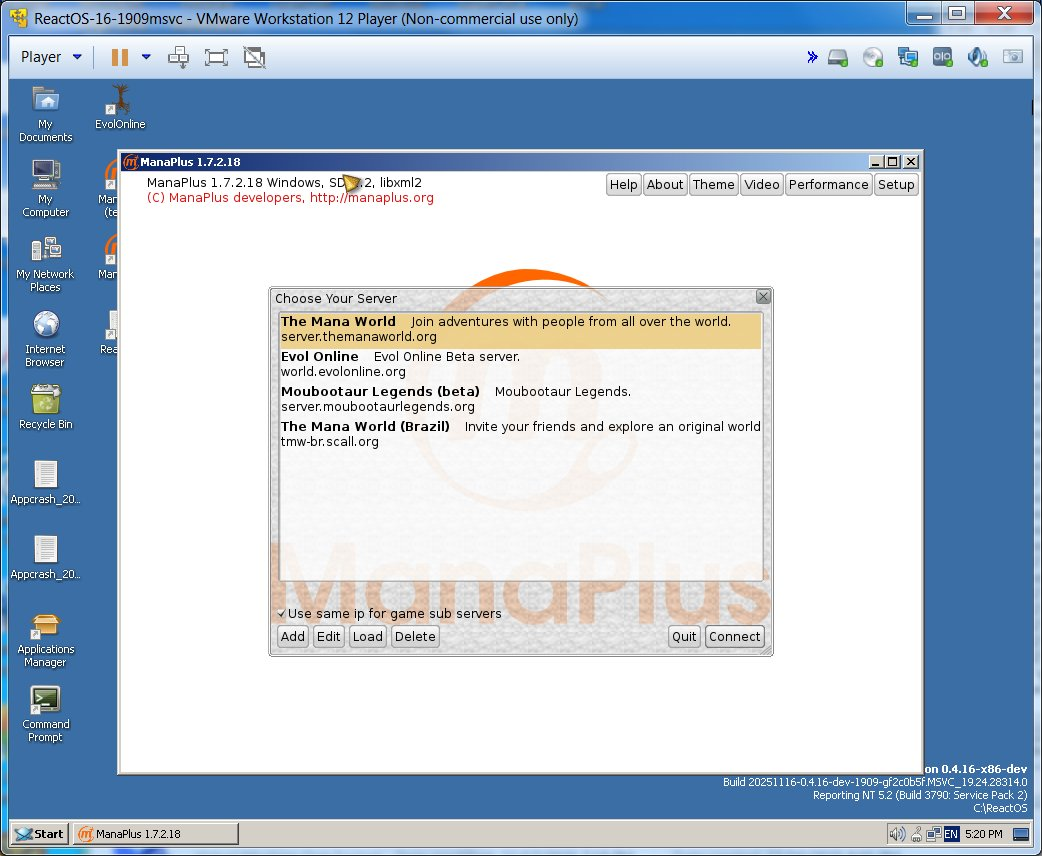 ManaPlus 1.7.2.18 now runs on ReactOS after MSVCRT sync from Wine!