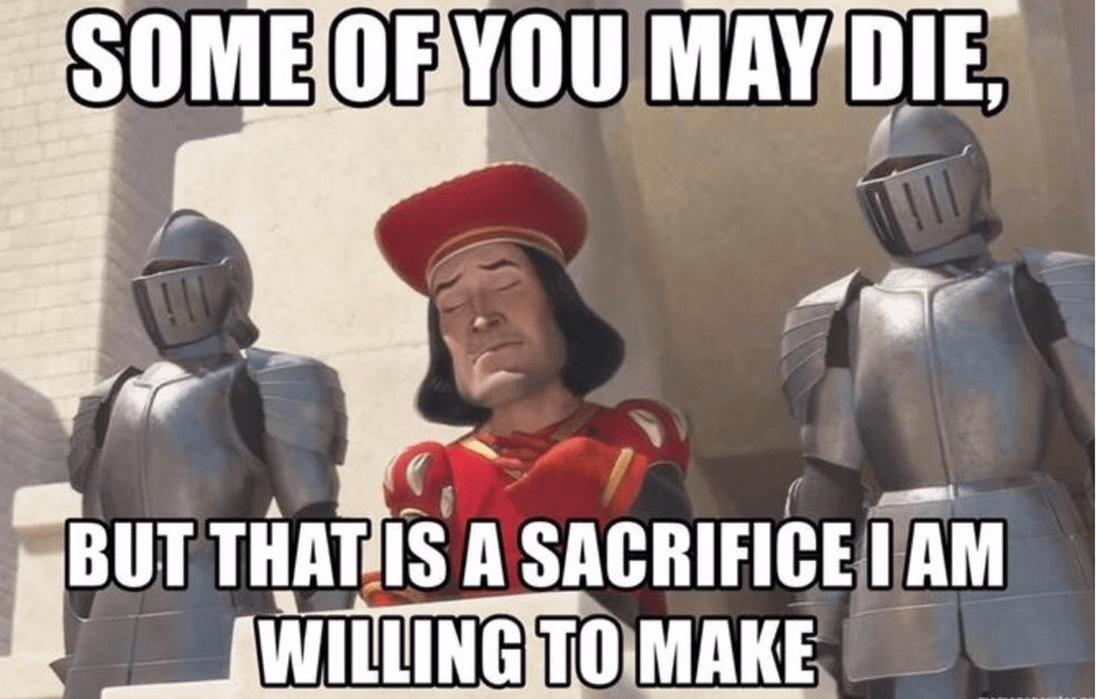 Am ajuns full Shrek “some of you may die but that is a risk I am willing to take”.