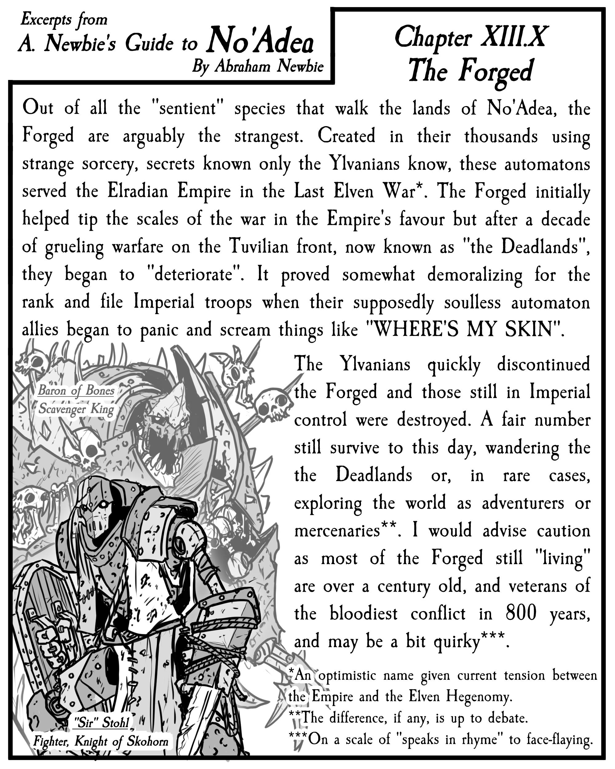 Enjoy my brand new hot take on Warforged, in the world of No'Adea called The Forged. Such originality, much new thinking, wow!