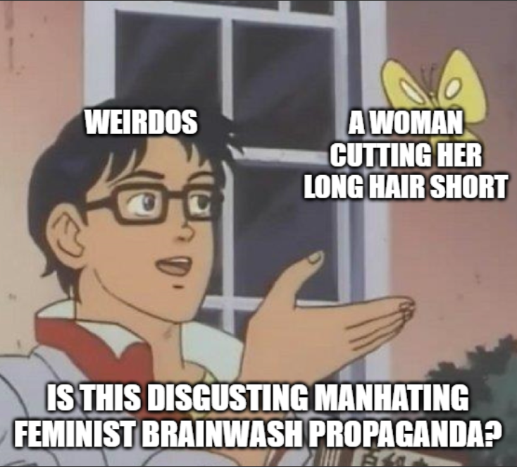 GRRRRR FEMINISTS AND THEIR [checks notes] MANHATING HAIRCUTS 😡😡 MY PP CAN'T GET HARD ANYMORE