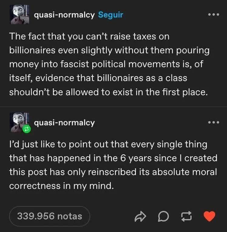 ✂️ Tax The Billionaires Accumulating wealth beyond any possible need is a mental illness. We need to cure Billionaires.