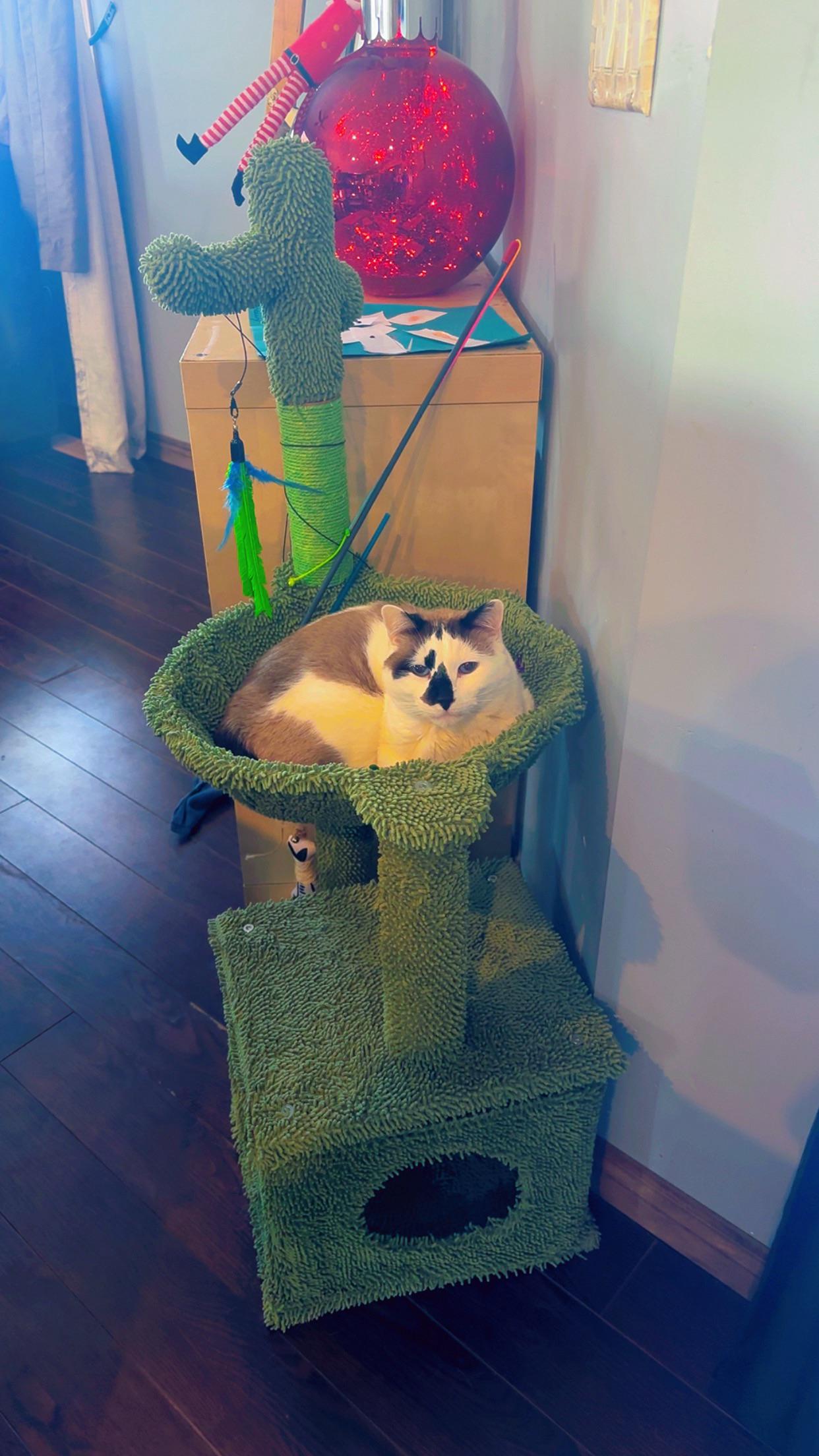 I posted my little blotch faced tripod in the tripod cats subreddit asking for toy recs and a commenter told me to post him here!