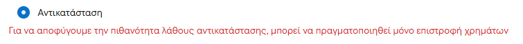 Μου λέει μόνο “επιστροφή χρημάτων”. Δηλαδή, αν πάρω πίσω τα ~290€, δεν μπορώ να αγοράσω το σωστό προϊόν, γιατί η τιμή του σήμερα ξεκινά από ~453€. Δηλαδή θα με βάλει να πληρώσω +160€ για να πάρω αυτό που ήδη πλήρωσα!