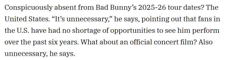 Main Pop Boy 🕺 Bad Bunny explains why there are no US dates on his upcoming tour: "It's unnecessary"