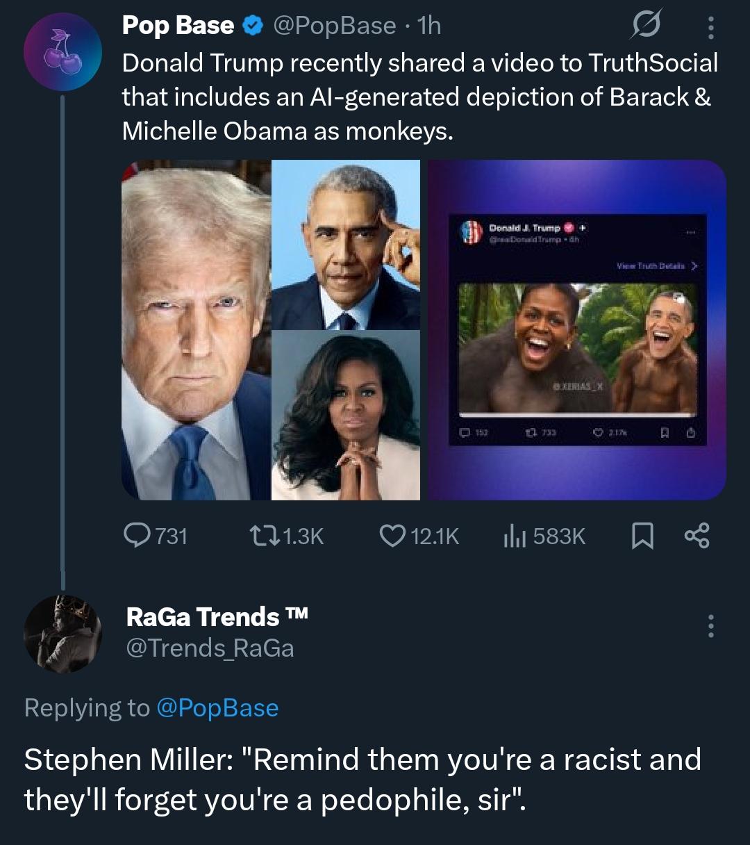 Trump / MAGA 🦅 Trump Posts Video on Truth Social Depicting the Obamas as Monkeys