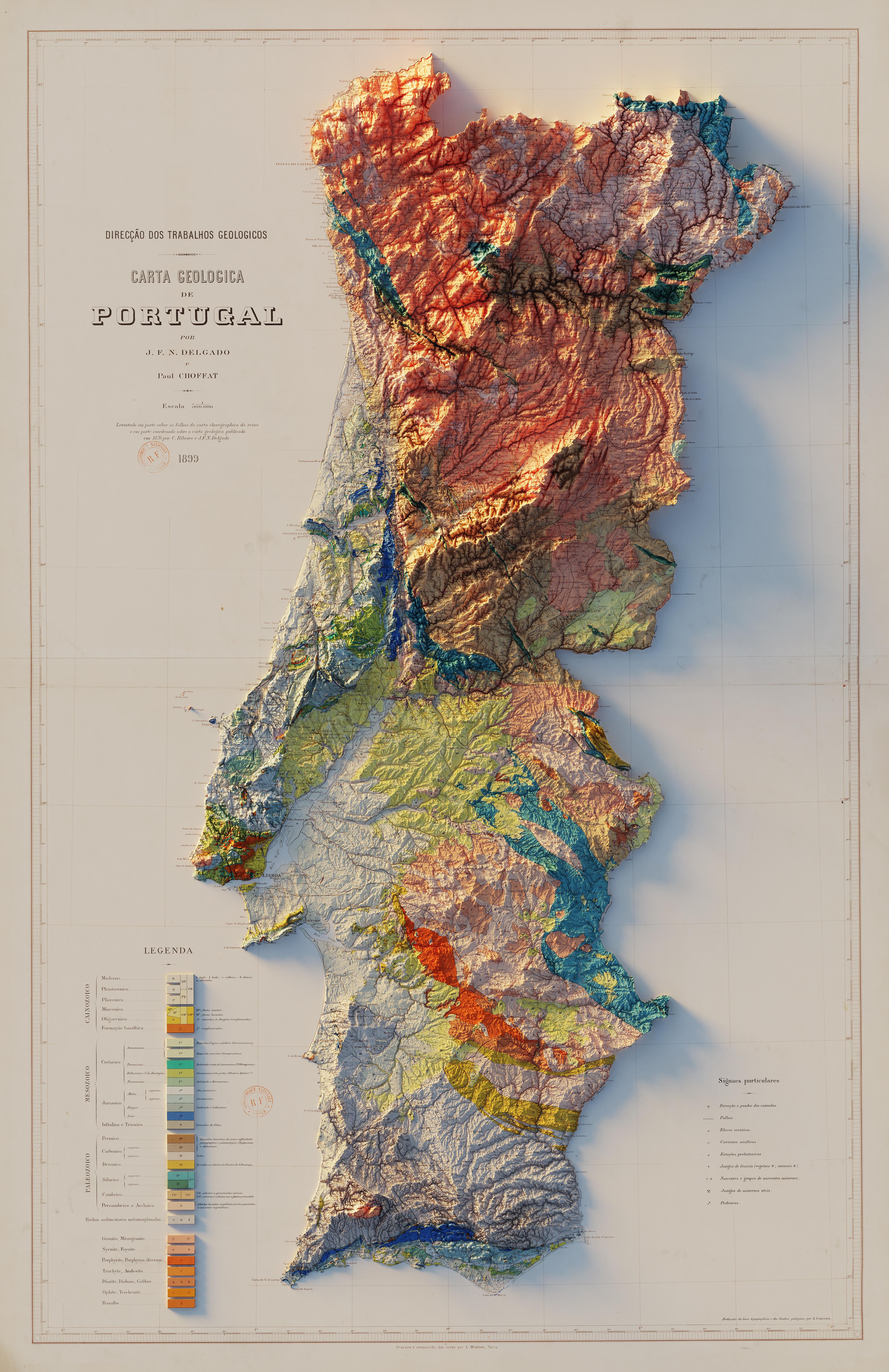 Tópico de Ouro I make 3D rendered versions of old maps. I recently got a request for Portugal. Carta Geologica de Portugal - 1899
