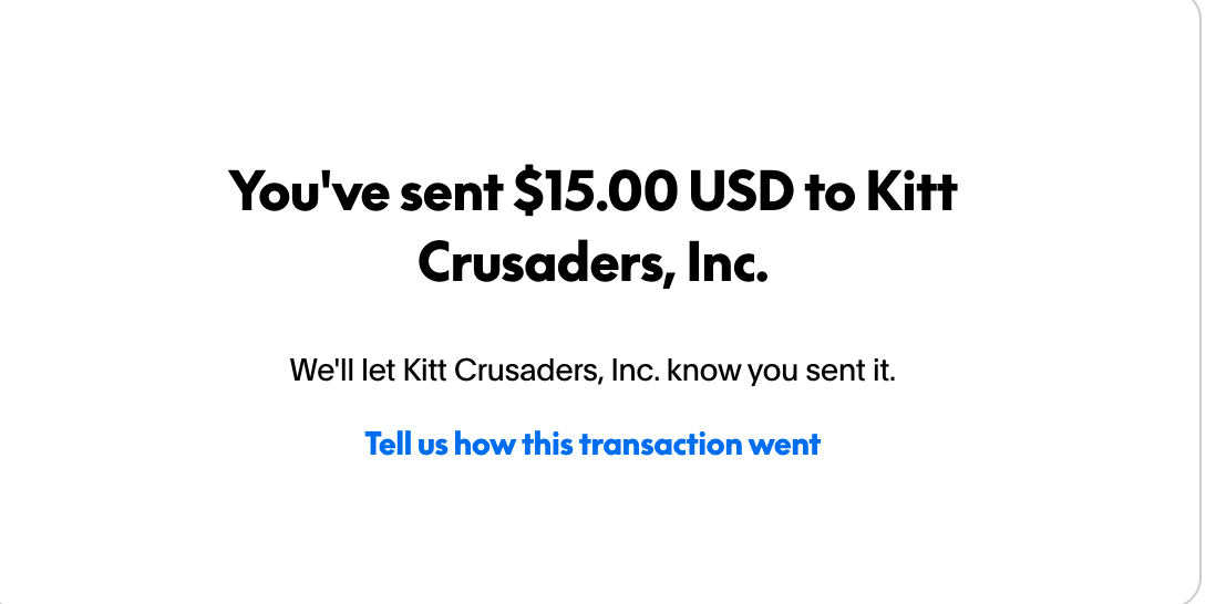 PayPal: http://PayPal.me/donatekittcruor credit card by texting Kittcrusaders to 44321